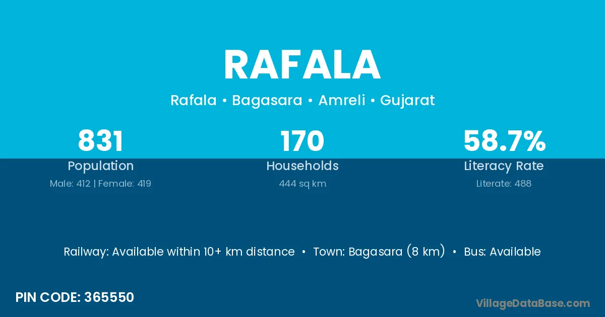 Bagasara (8 km) is the nearest town to Rafala village for major economic activities and is located approximately 8 km away.