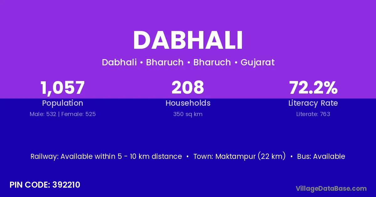 Dabhali village has a total population of 292 people, of which 143 are males and 149 are females.