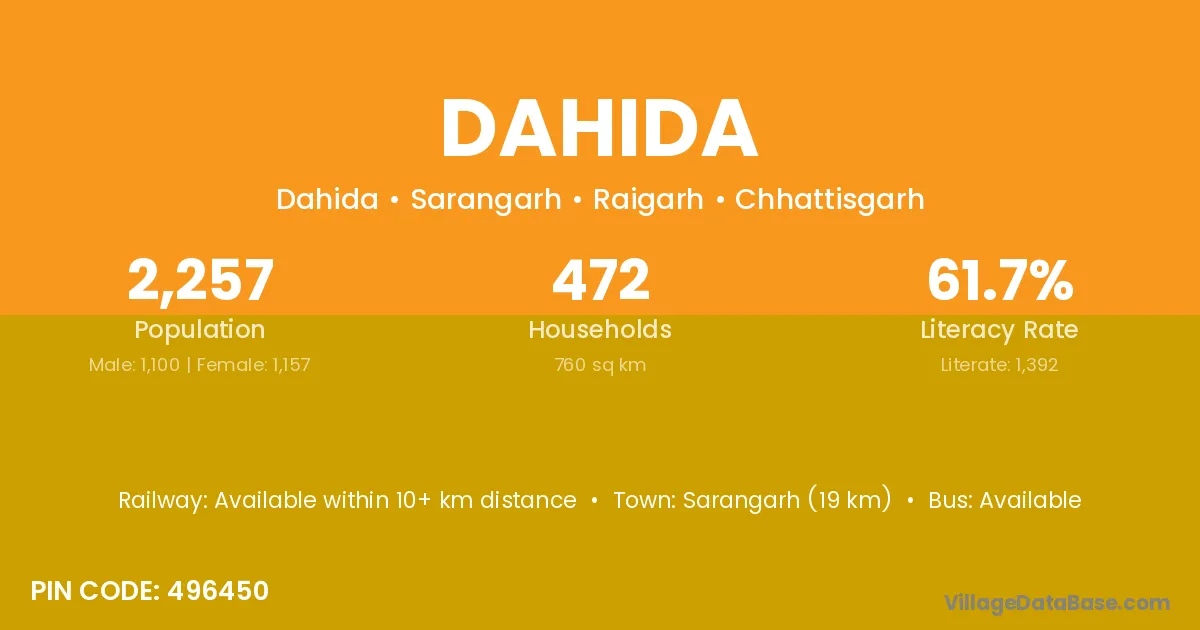 Chalala (3 km) is the nearest town to Dahida village for major economic activities and is located approximately 3 km away.