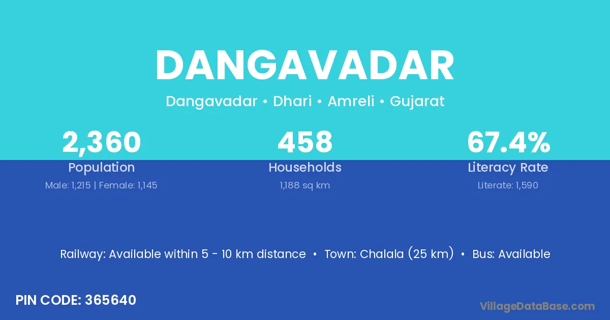 Chalala (25 km) is the nearest town to Dangavadar village for major economic activities and is located approximately 25 km away.