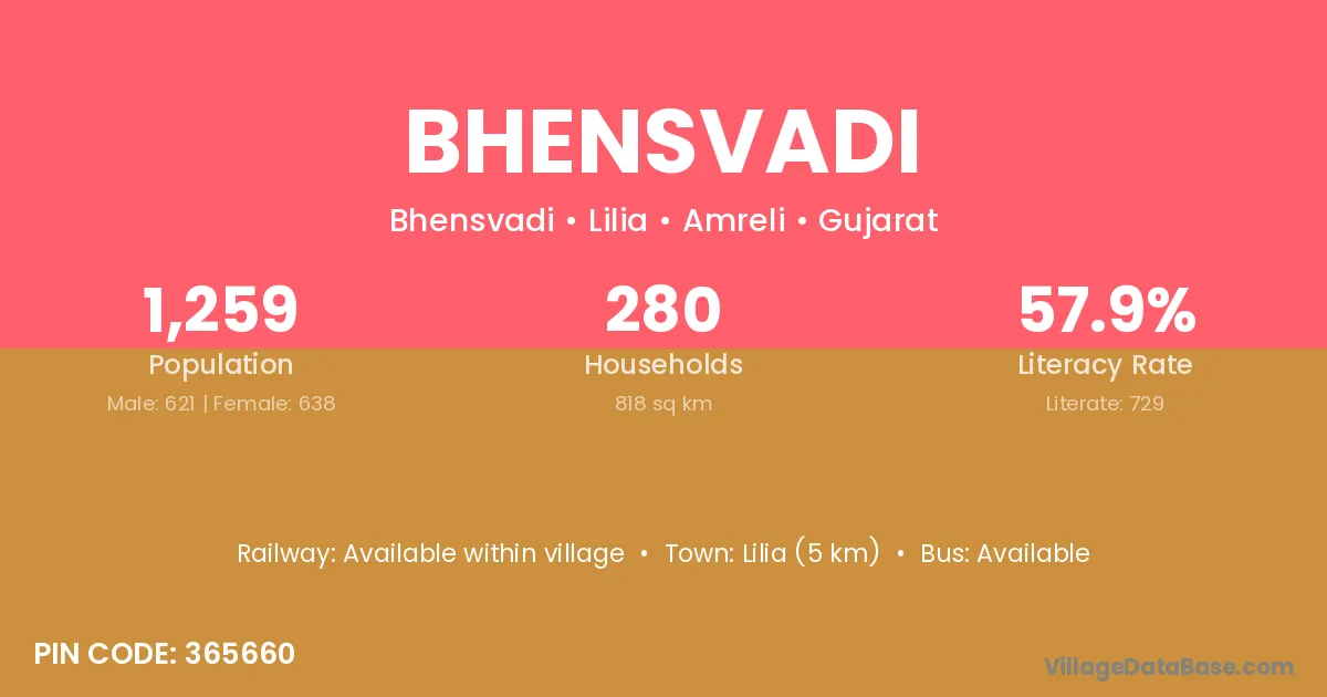 Lilia (5 km) is the nearest town to Bhensvadi village for major economic activities and is located approximately 5 km away.