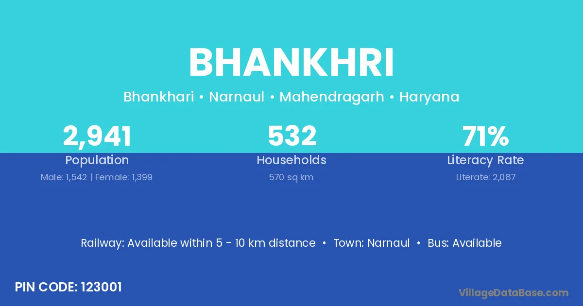 The literacy rate of Bhankhri village is 61.69%. Male literacy stands at 72.24% and female literacy at 50.97%.
