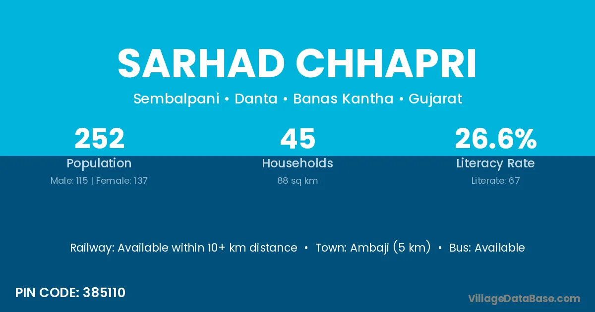 Ambaji (5 km) is the nearest town to Sarhad Chhapri village for major economic activities and is located approximately 5 km away.