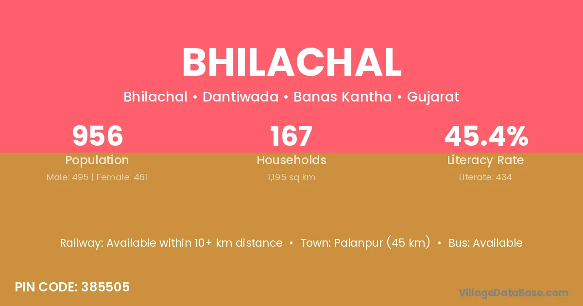 Palanpur (45 km) is the nearest town to Bhilachal village for major economic activities and is located approximately 45 km away.