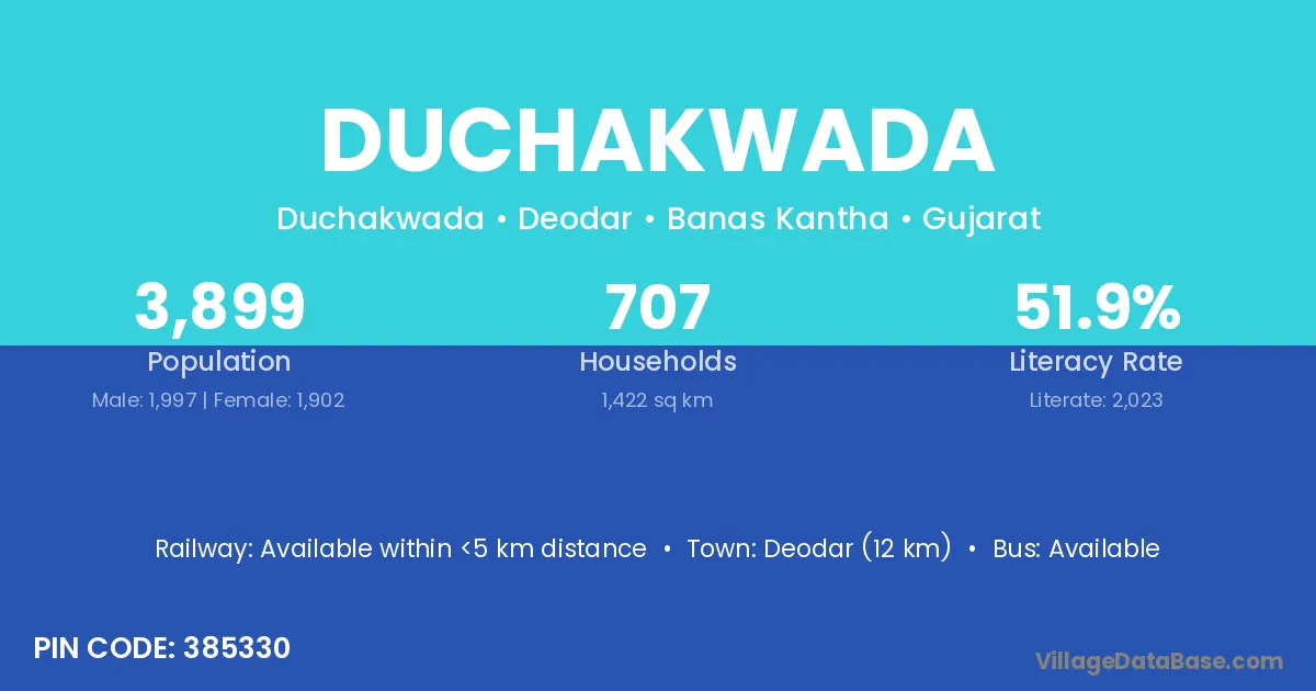 Deodar (12 km) is the nearest town to Duchakwada village for major economic activities and is located approximately 12 km away.