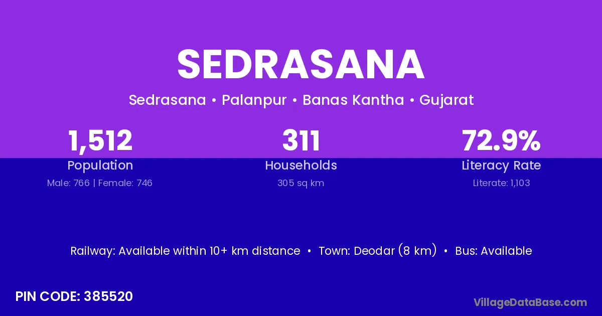 According to Census 2011 information, the village code of Sedrasana village is 385520.