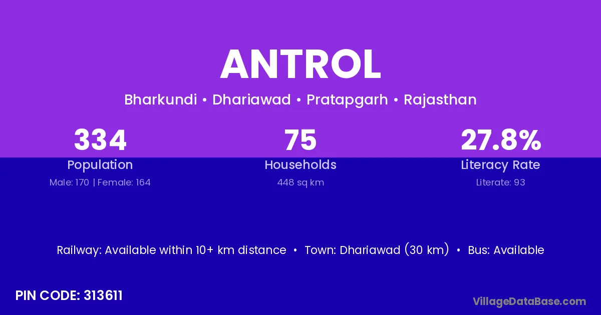 Tharad (25 km) is the nearest town to Antrol village for major economic activities and is located approximately 25 km away.