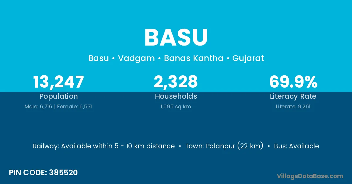 Palanpur (22 km) is the nearest town to Basu village for major economic activities and is located approximately 22 km away.