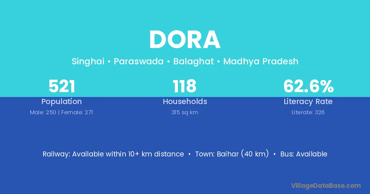 According to Census 2011 information, the village code of Dora village is 392230.