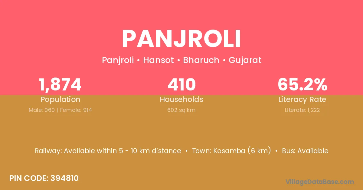 Kosamba (6 km) is the nearest town to Panjroli village for major economic activities and is located approximately 6 km away.