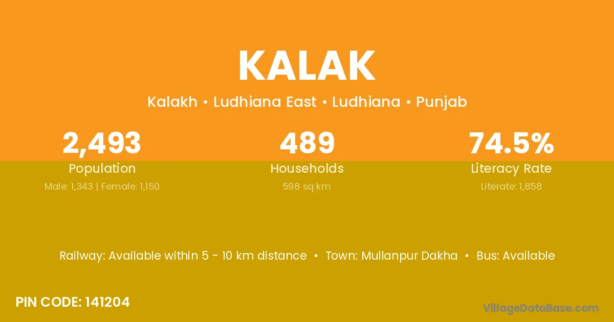 Kalak village has a total population of 2,203 people, of which 1,170 are males and 1,033 are females.