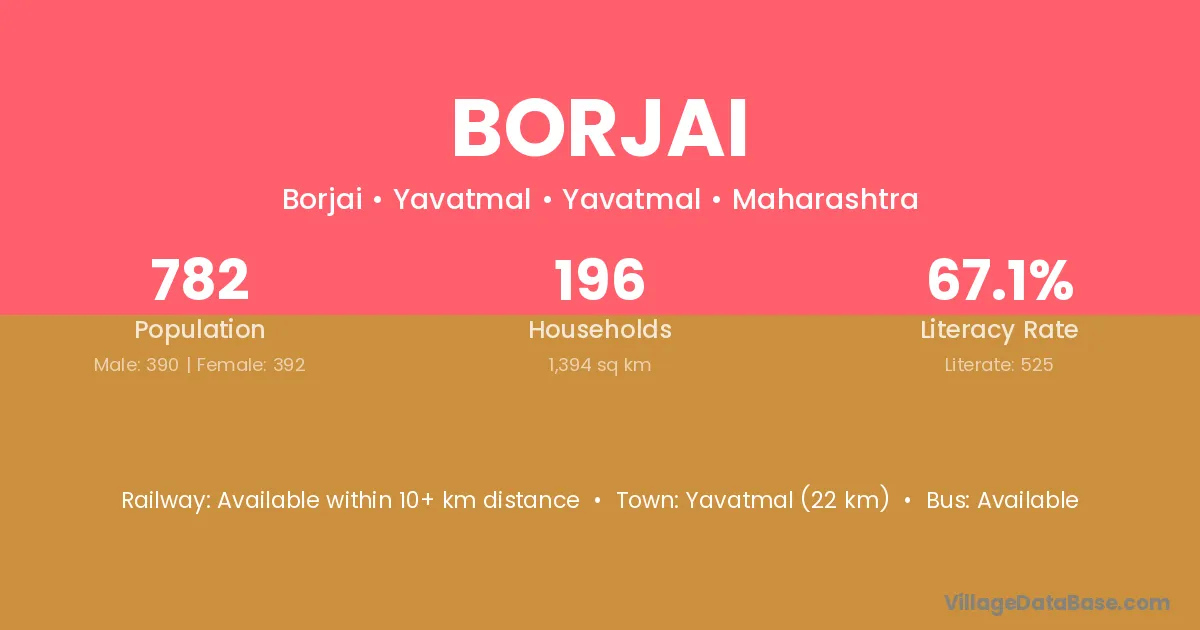 Borjai village has a total population of 1,519 people, of which 787 are males and 732 are females.
