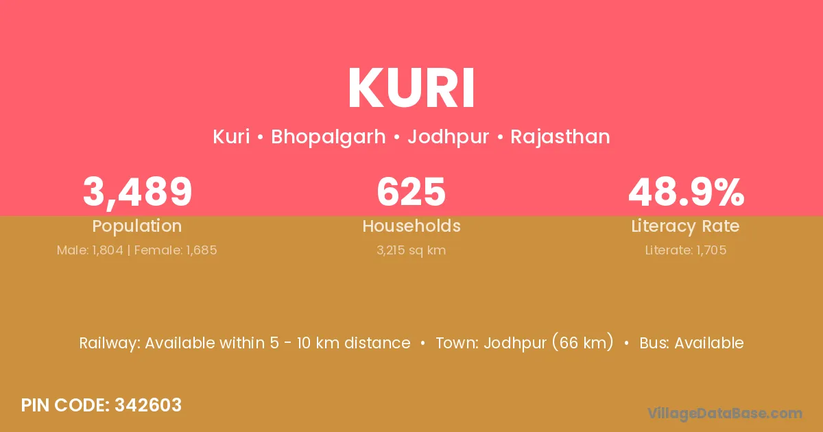 According to Census 2011 information, the village code of Kuri village is 393110.