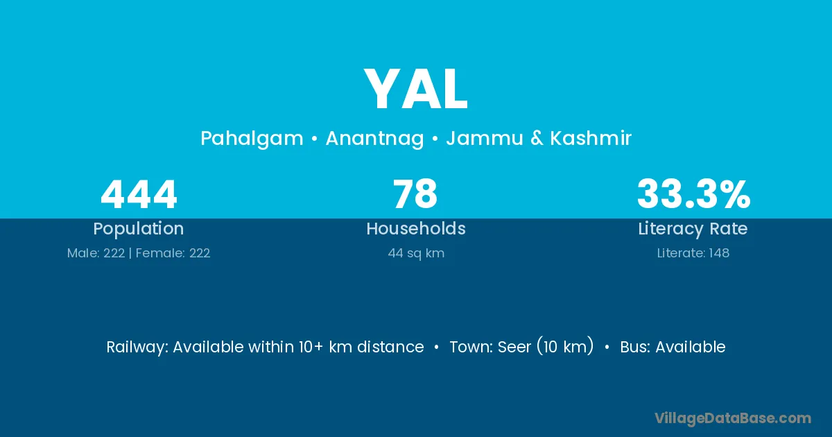 The literacy rate of Yal village is 67.72%. Male literacy stands at 75.43% and female literacy at 58.54%.