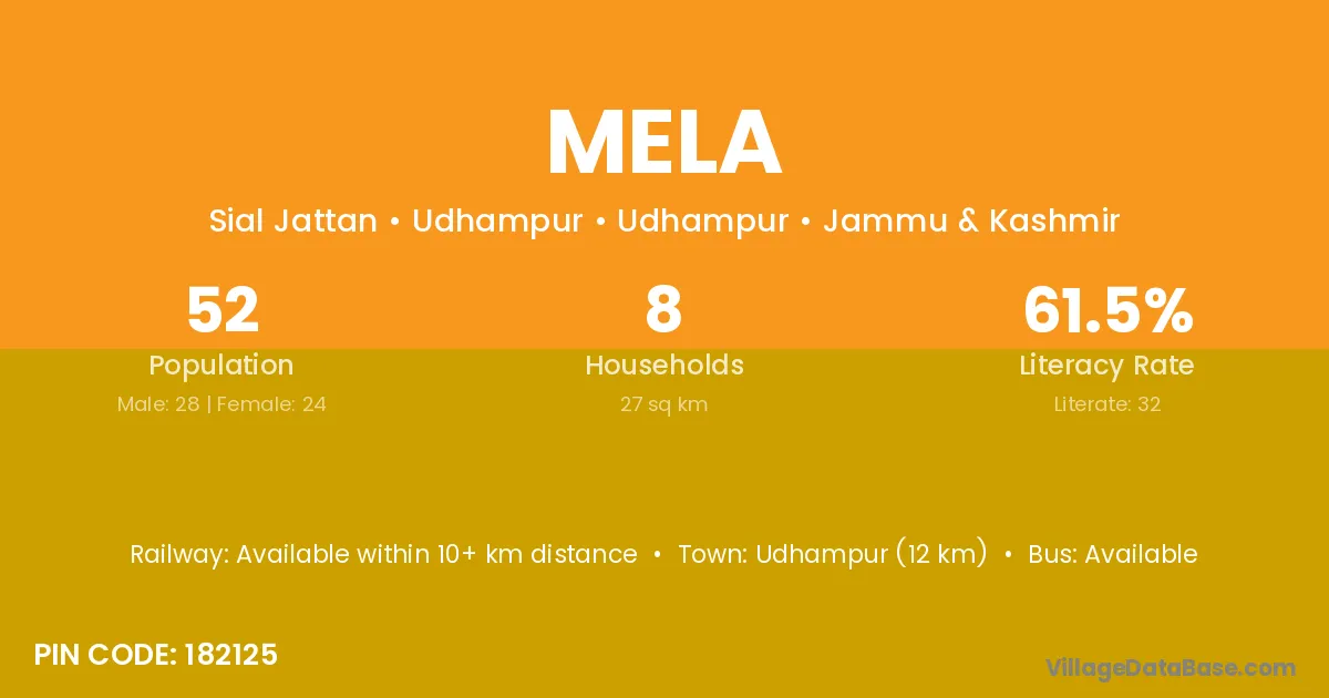 Mela village has a total population of 1,277 people, of which 666 are males and 611 are females.