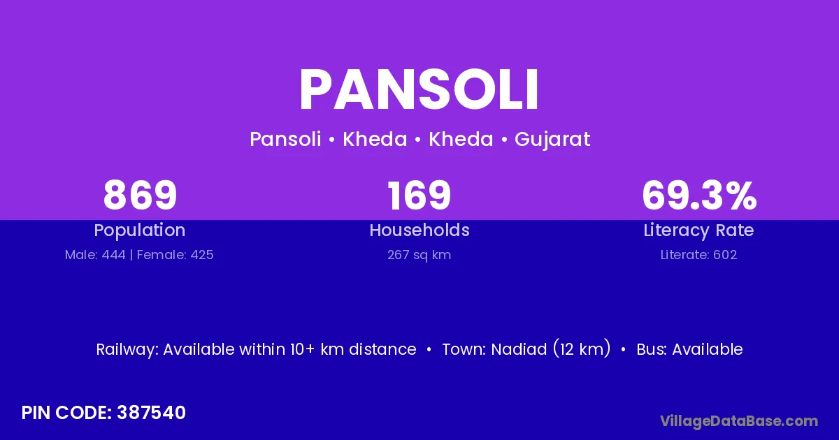 According to Census 2011 information, the village code of Pansoli village is 393135.
