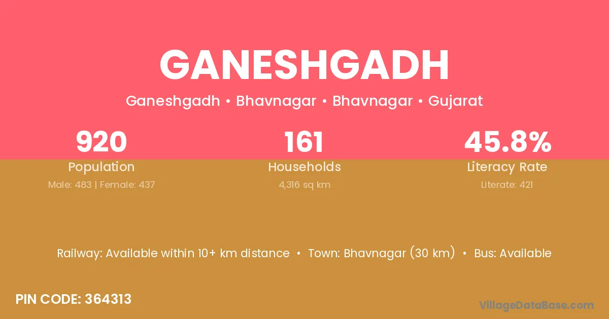 Gariadhar (8 km) is the nearest town to Ganeshgadh village for major economic activities and is located approximately 8 km away.