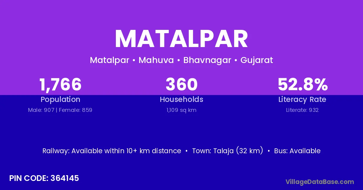 Talaja (32 km) is the nearest town to Matalpar village for major economic activities and is located approximately 32 km away.