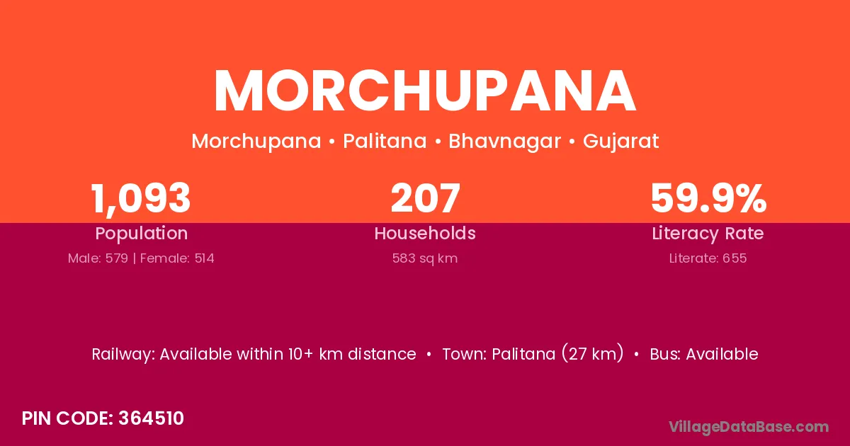 Palitana (27 km) is the nearest town to Morchupana village for major economic activities and is located approximately 27 km away.