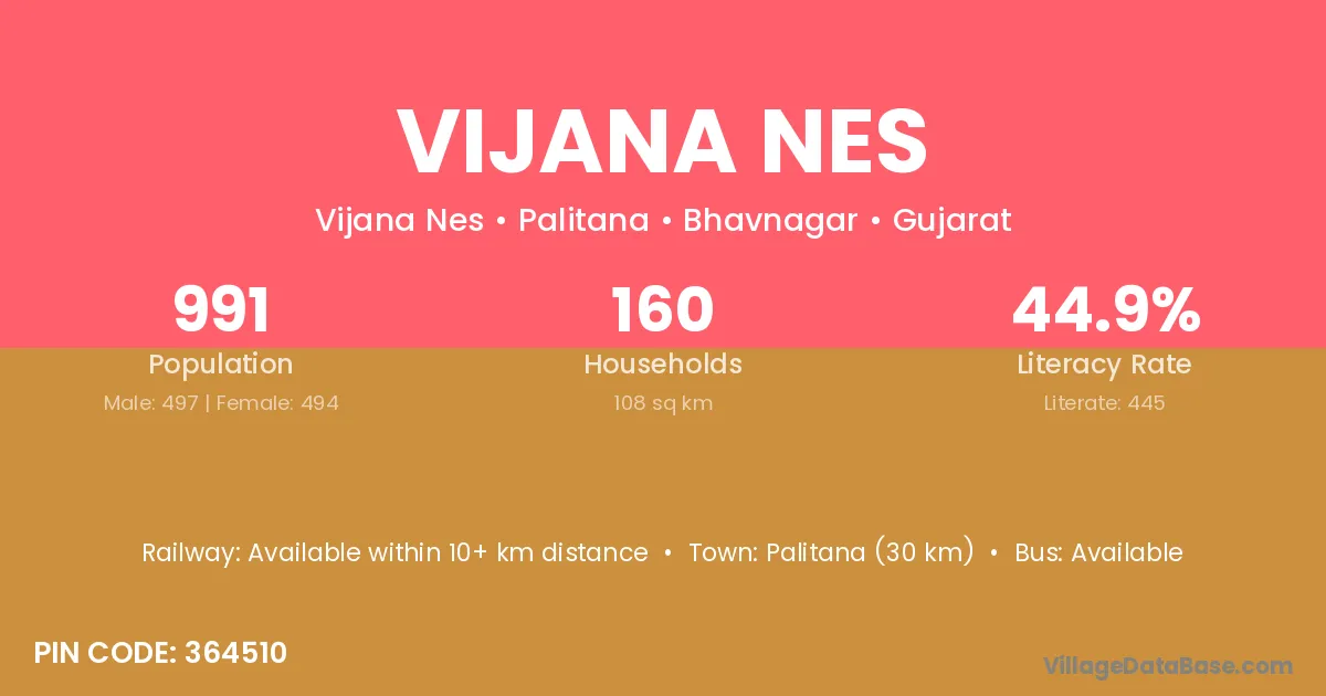 Palitana (30 km) is the nearest town to Vijana Nes village for major economic activities and is located approximately 30 km away.