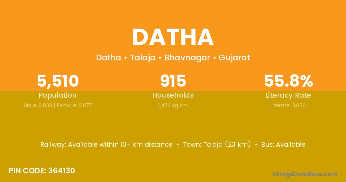 Talaja (23 km) is the nearest town to Datha village for major economic activities and is located approximately 23 km away.