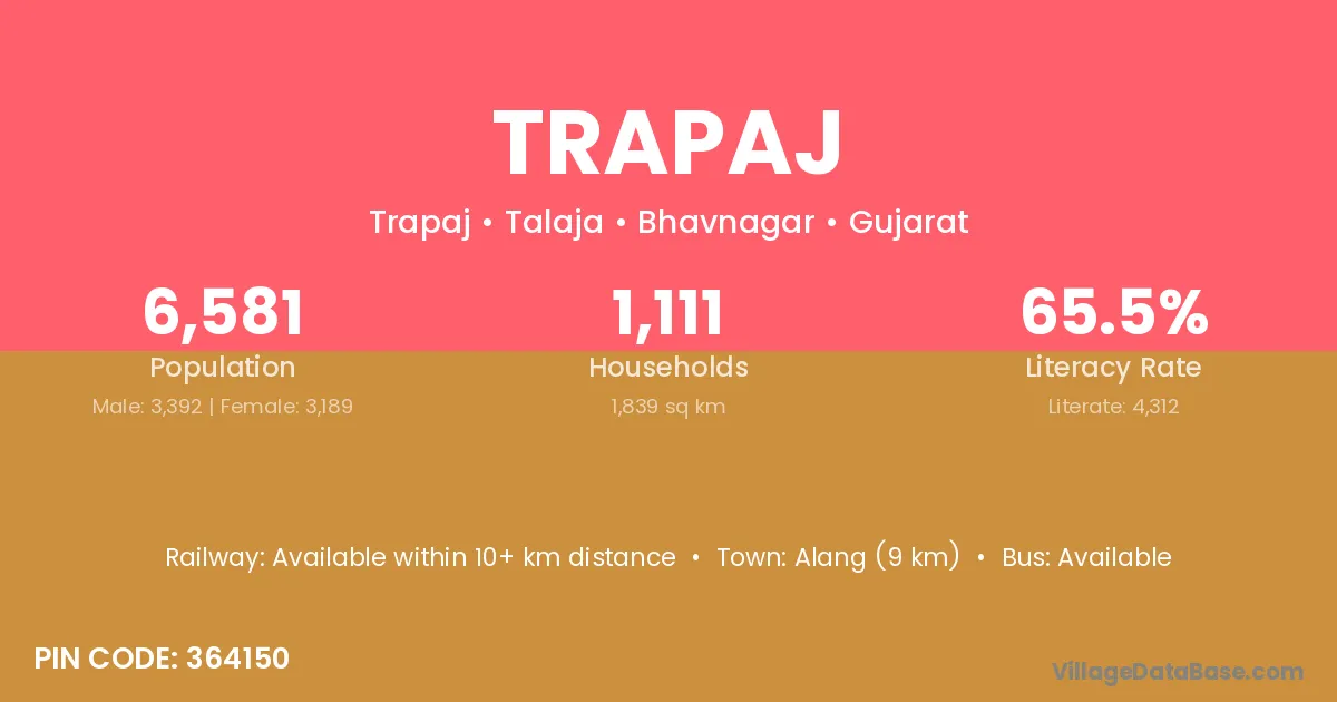 Trapaj village has a total population of 6,581 people, of which 3,392 are males and 3,189 are females.