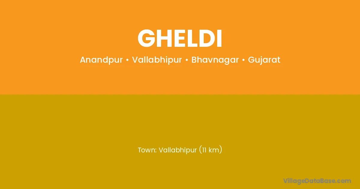 Vallabhipur (11 km) is the nearest town to Gheldi village for major economic activities and is located approximately 11 km away.