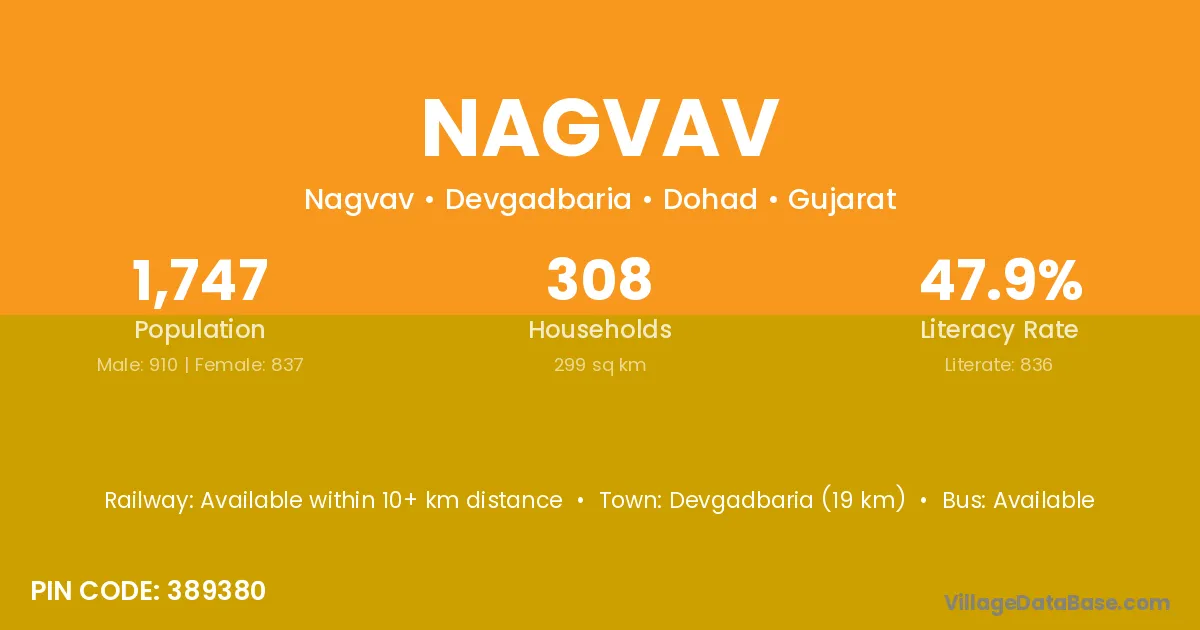 Devgadbaria (19 km) is the nearest town to Nagvav village for major economic activities and is located approximately 19 km away.