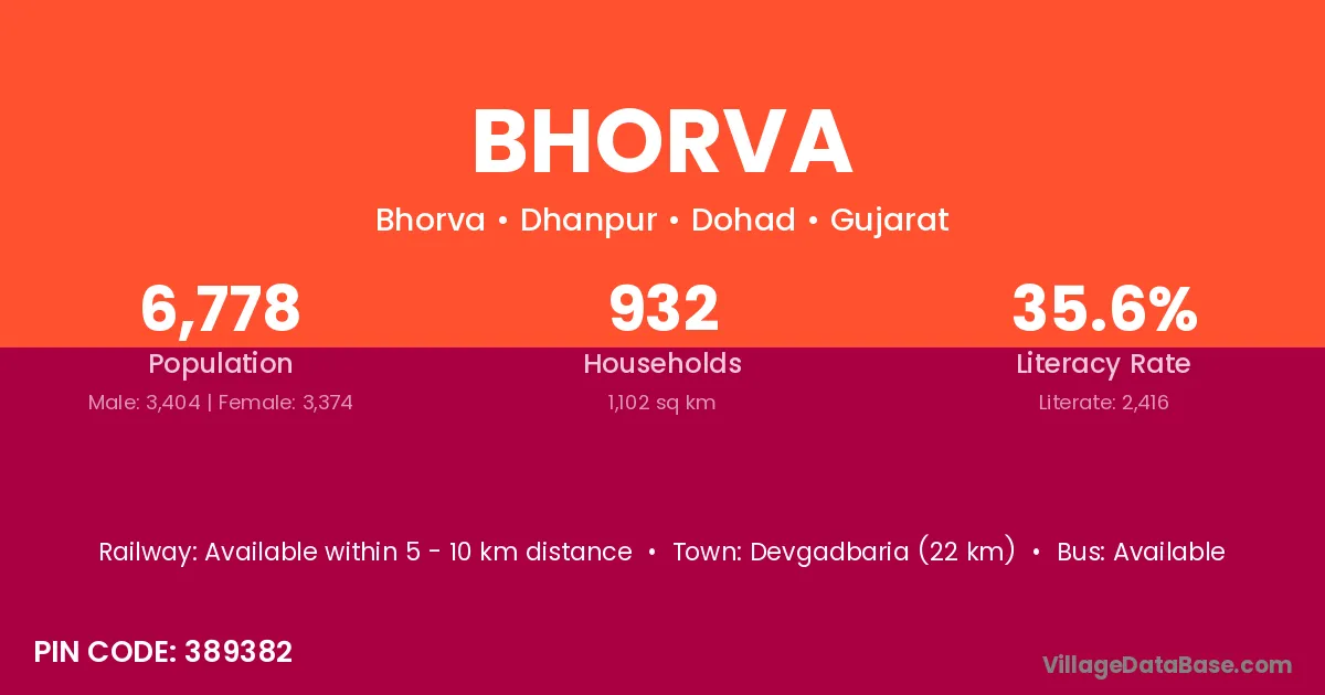 Devgadbaria (22 km) is the nearest town to Bhorva village for major economic activities and is located approximately 22 km away.