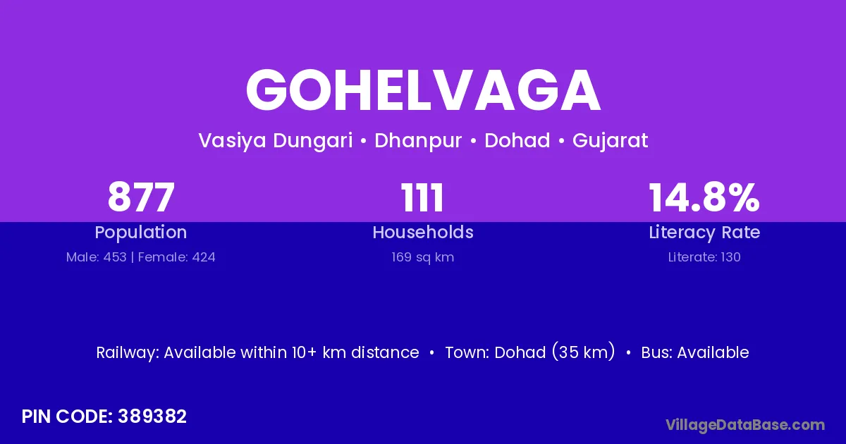 Dohad (35 km) is the nearest town to Gohelvaga village for major economic activities and is located approximately 35 km away.