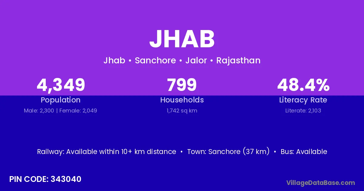 Jhalod (10 km) is the nearest town to Jhab village for major economic activities and is located approximately 10 km away.