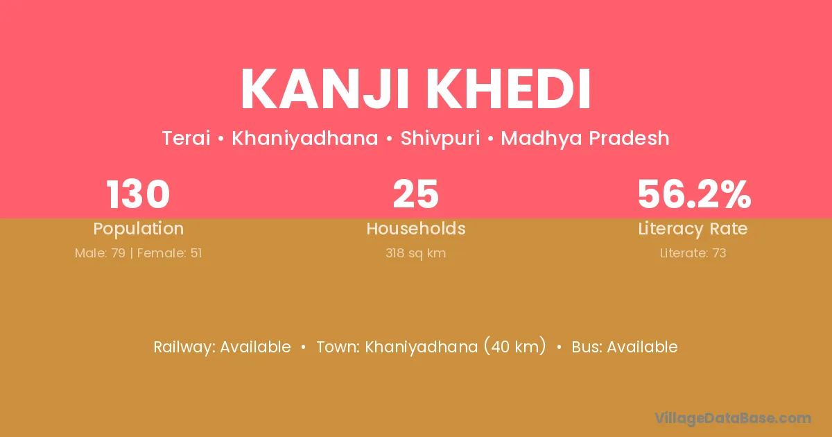 Kanji Khedi village has a total population of 624 people, of which 316 are males and 308 are females.