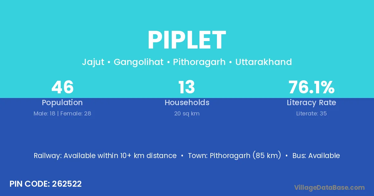 Jhalod (20 km) is the nearest town to Piplet village for major economic activities and is located approximately 20 km away.