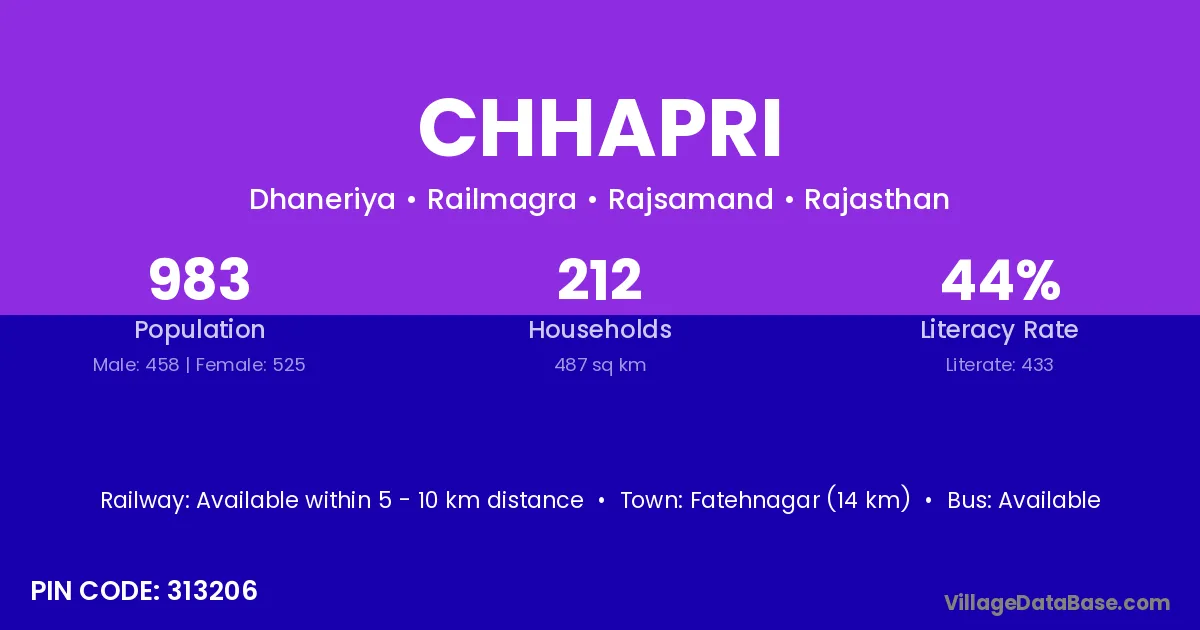 Jhalod (28 km) is the nearest town to Chhapri village for major economic activities and is located approximately 28 km away.