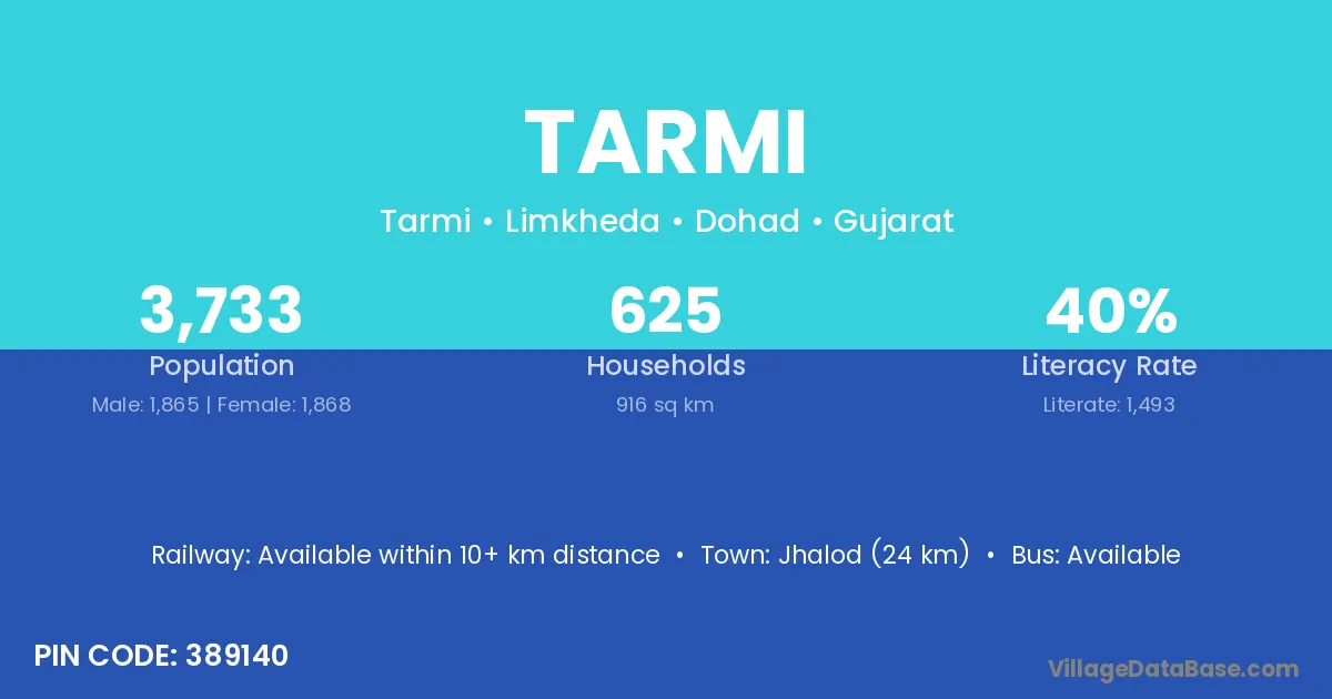 Jhalod (24 km) is the nearest town to Tarmi village for major economic activities and is located approximately 24 km away.
