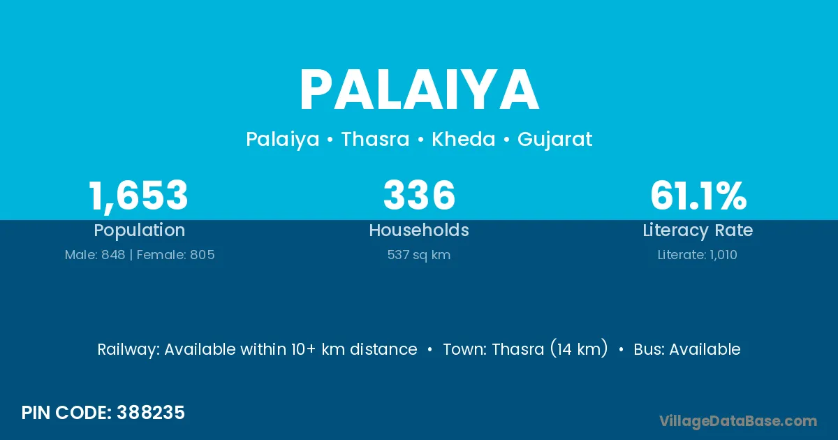Dehgam (2 km) is the nearest town to Palaiya village for major economic activities and is located approximately 2 km away.