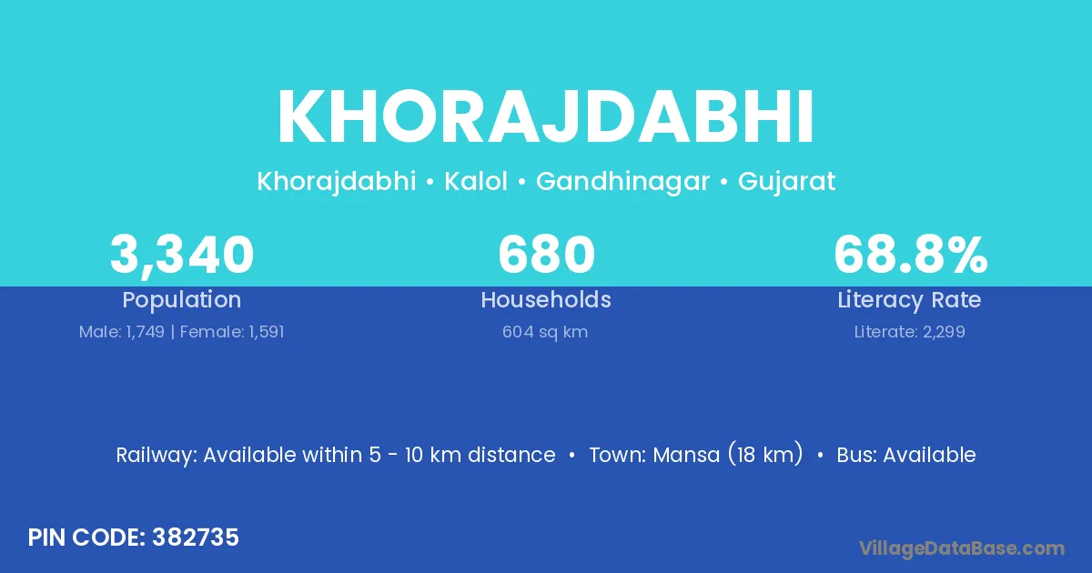Mansa (18 km) is the nearest town to Khorajdabhi village for major economic activities and is located approximately 18 km away.