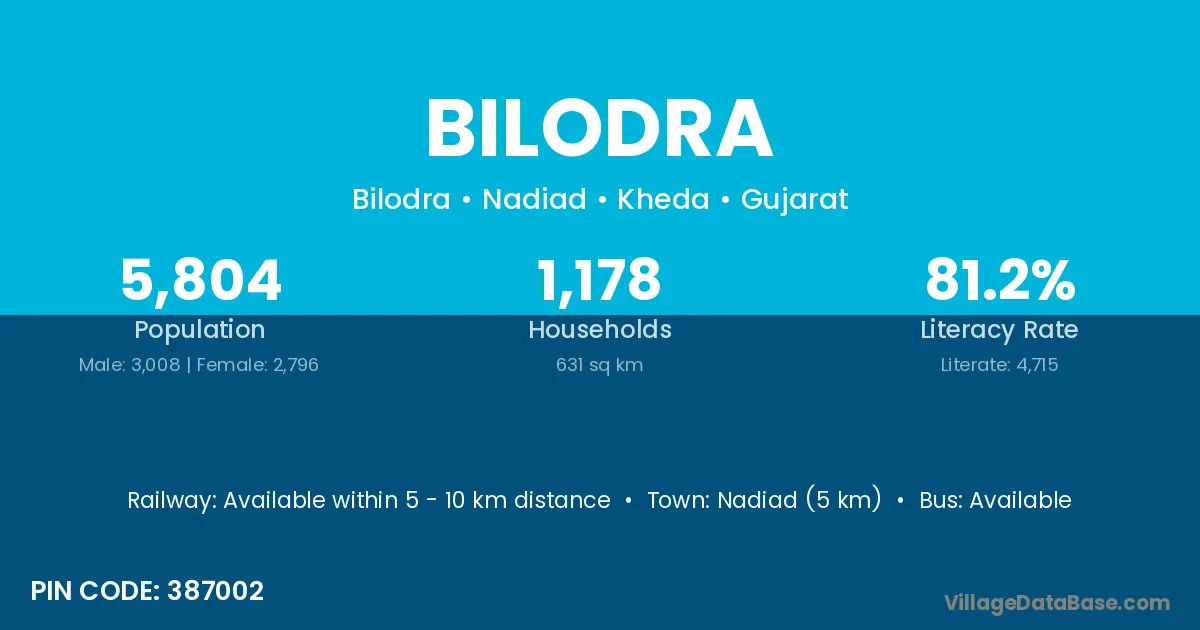 There are approximately 1,531 households in Bilodra village.