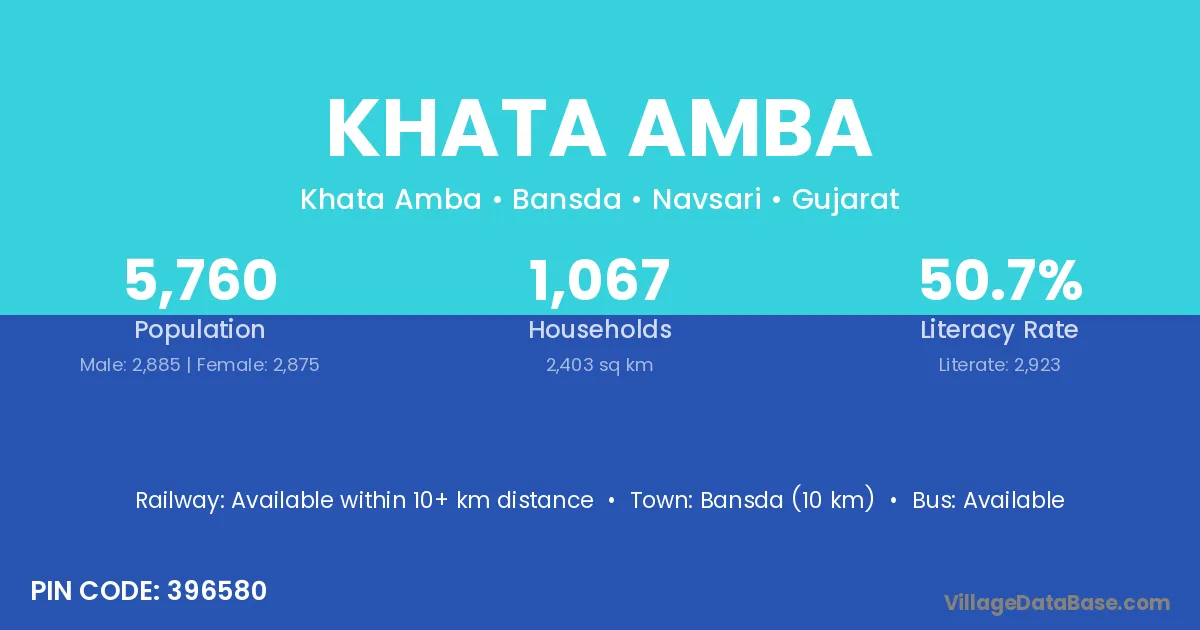 Khata Amba village has a total population of 2,436 people, of which 1,247 are males and 1,189 are females.