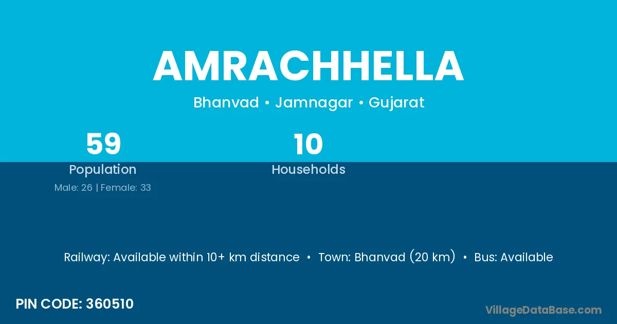 Bhanvad (20 km) is the nearest town to Amrachhella village for major economic activities and is located approximately 20 km away.