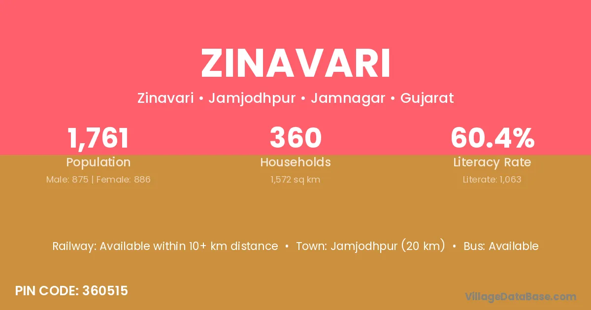 Jamjodhpur (20 km) is the nearest town to Zinavari village for major economic activities and is located approximately 20 km away.