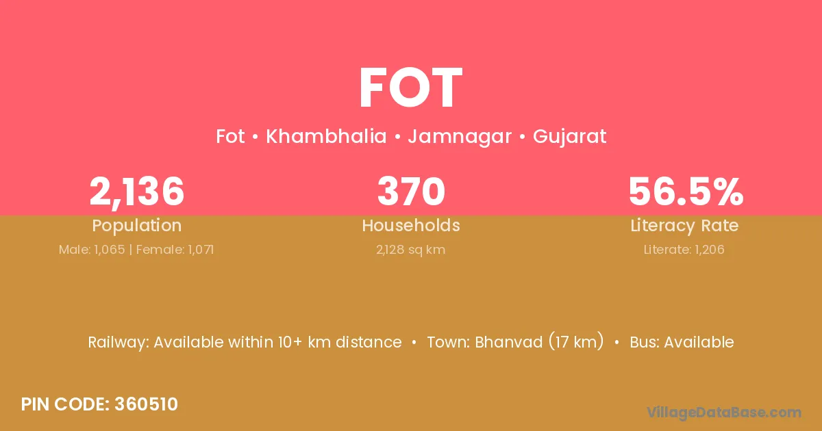 Bhanvad (17 km) is the nearest town to Fot village for major economic activities and is located approximately 17 km away.