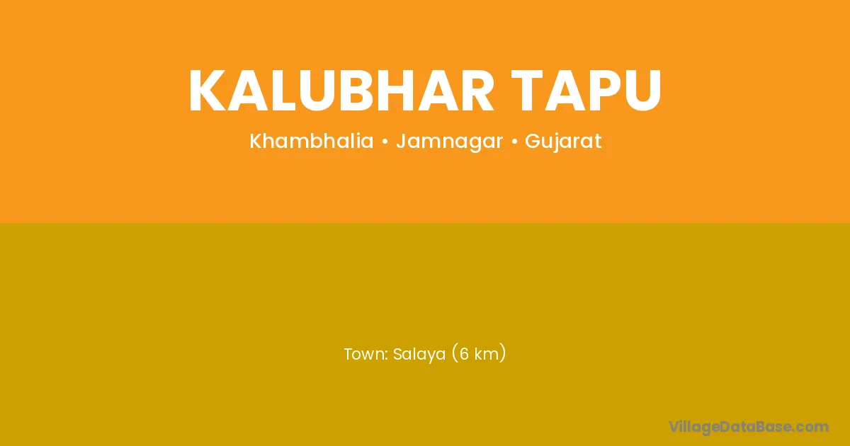Salaya (6 km) is the nearest town to Kalubhar Tapu village for major economic activities and is located approximately 6 km away.