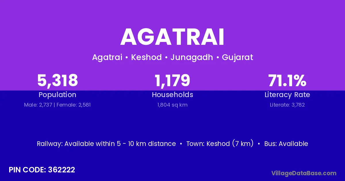 Keshod (7 km) is the nearest town to Agatrai village for major economic activities and is located approximately 7 km away.