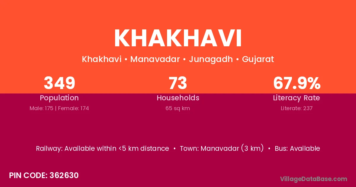 Manavadar (3 km) is the nearest town to Khakhavi village for major economic activities and is located approximately 3 km away.