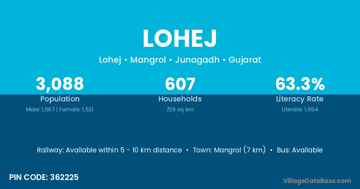 Mangrol (7 km) is the nearest town to Lohej village for major economic activities and is located approximately 7 km away.