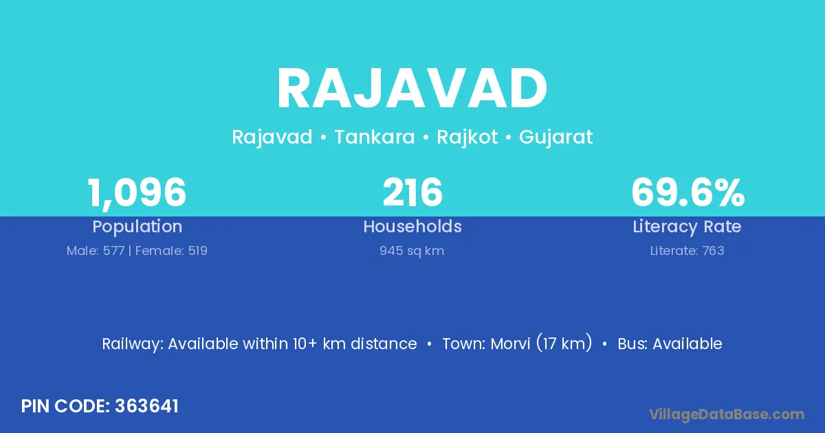 Keshod (26 km) is the nearest town to Rajavad village for major economic activities and is located approximately 26 km away.