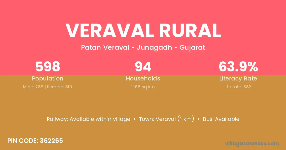 Veraval (1 km) is the nearest town to Veraval Rural village for major economic activities and is located approximately 1 km away.