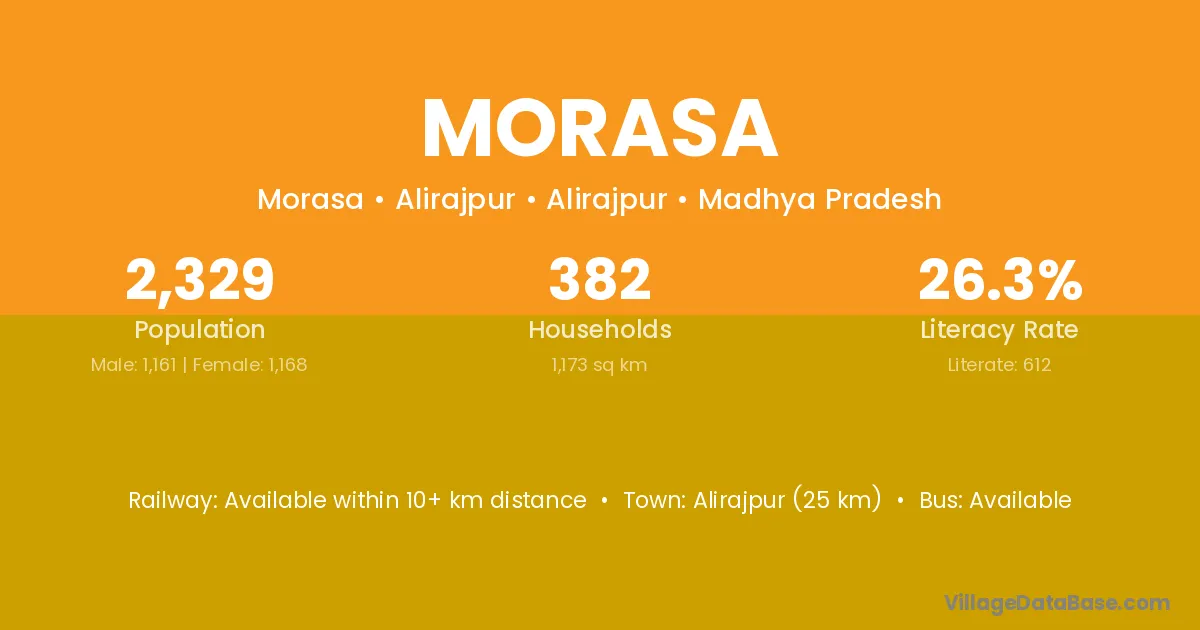Sutrapada (14 km) is the nearest town to Morasa village for major economic activities and is located approximately 14 km away.