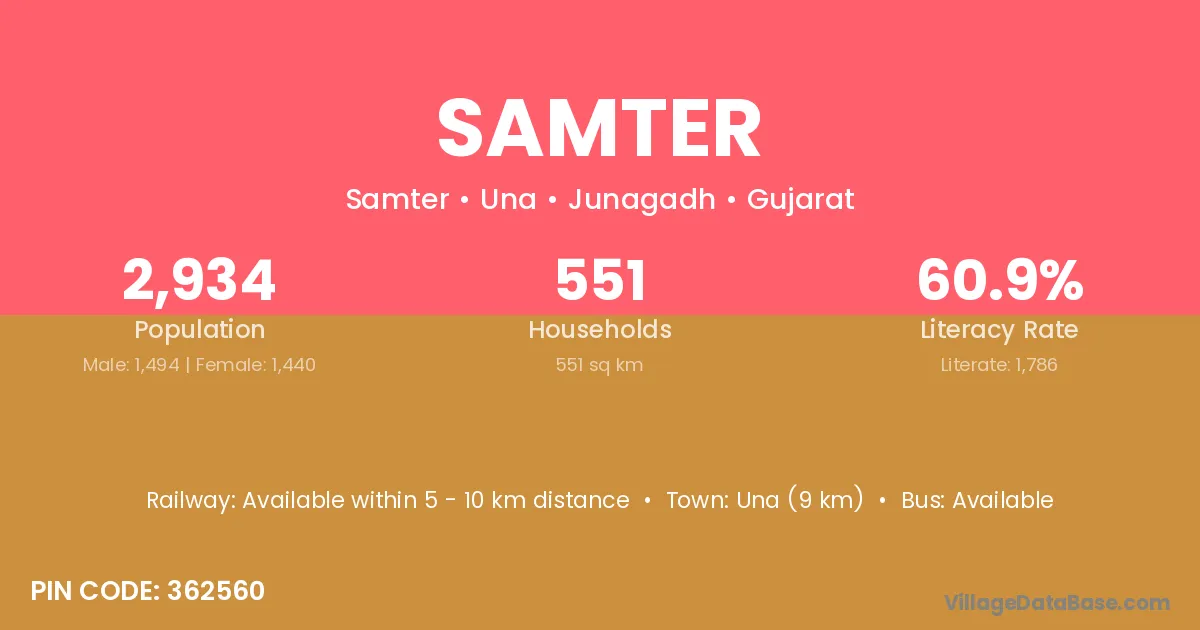 Samter village is located in the Una Taluka of the Junagadh district in Gujarat .